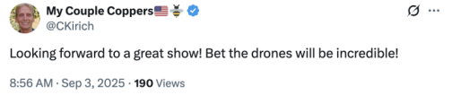 还有网友在社交平台X上表示,“期待精彩的表现!相信无人机(亮相)一定会让人难以置信!”↓